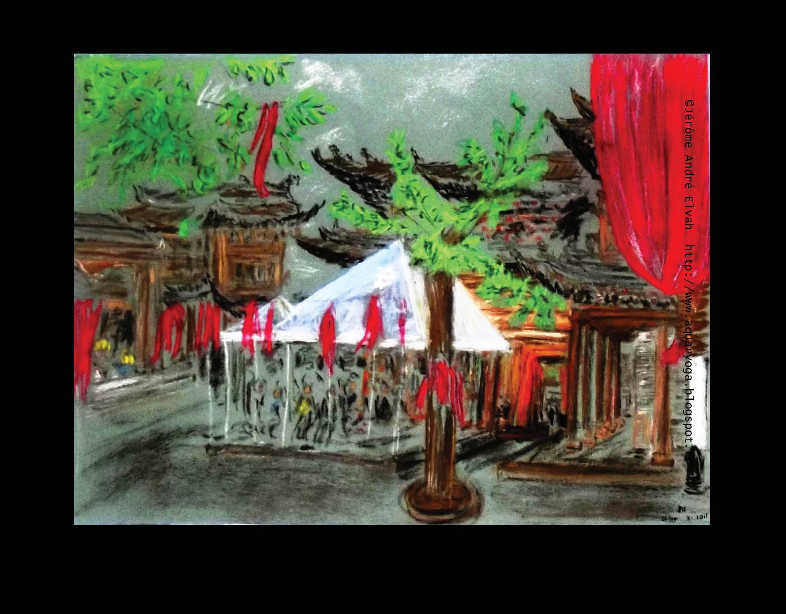 Sous les tonnelles et pagodes de Zanghie, Chine Pastel sec 11 2015